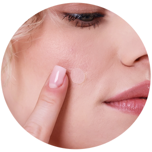 A Hydrocolloid patch is a small adhesive circle that is applied to the skin to target and heal pimples.